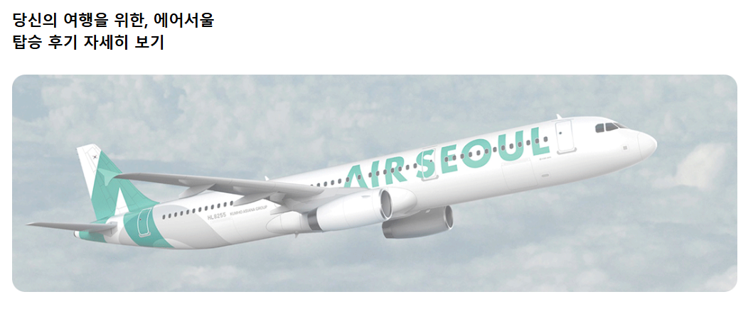 합리적인 가격과 다양한 편의 서비스를 제공하는 에어서울! 골프 여행, 쇼핑 여행 등에 최적화된 노선과 **가성비 높은 좌석 옵션**으로 여행을 더욱 편리하게 만들어 줍니다.