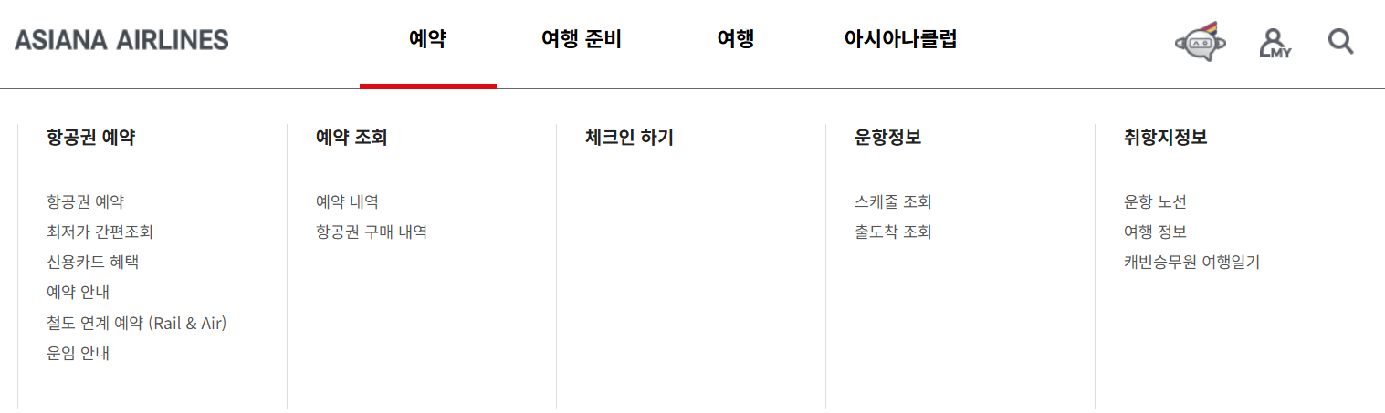 💻 아시아나 홈페이지의 주요 기능