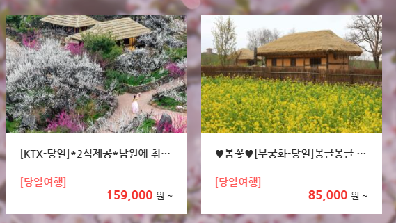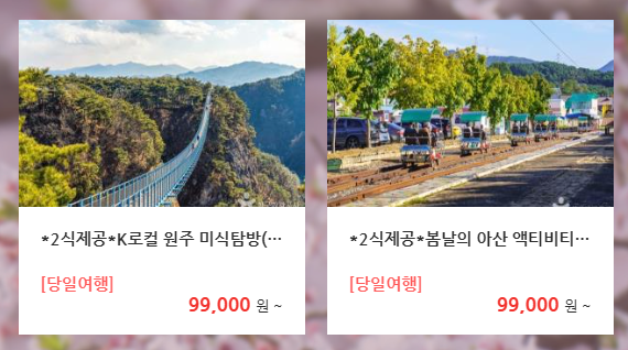 - 시즌 특가 이벤트 (벚꽃여행, 단풍여행, 해돋이 여행 등)