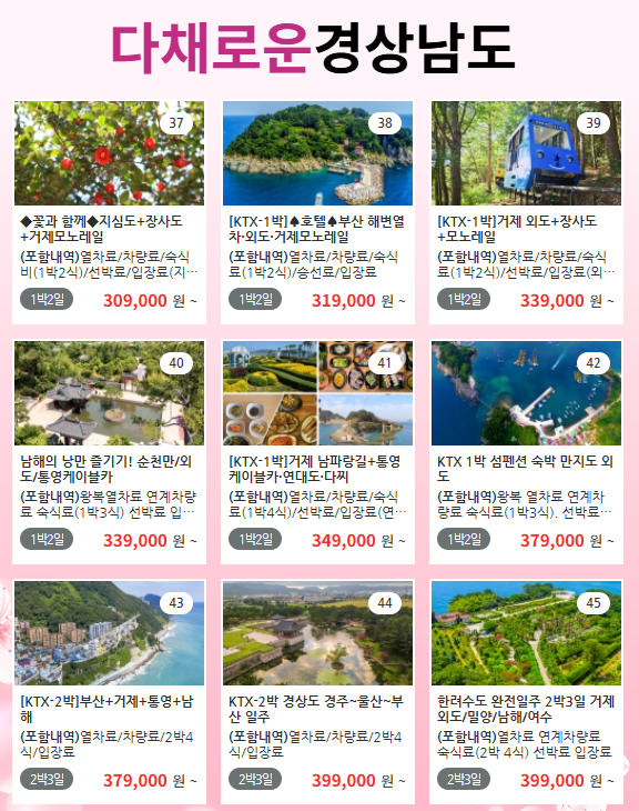 👉 국내 기차여행 전문 여행사로, KTX, SRT, 관광열차 등을 활용한 다양한 여행 상품을 제공합니다.