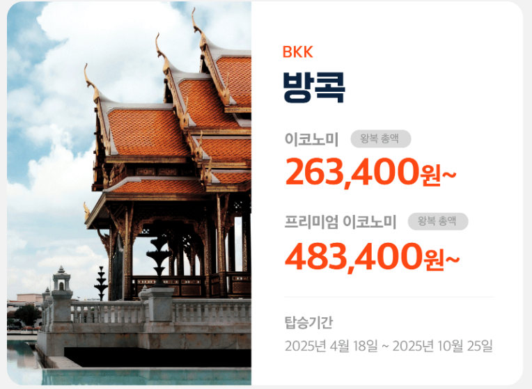 | 방콕 | ₩263,400 | ₩483,400 |