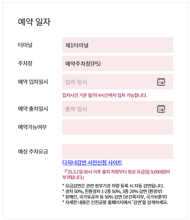 - 입·출차 날짜 및 시간 입력
