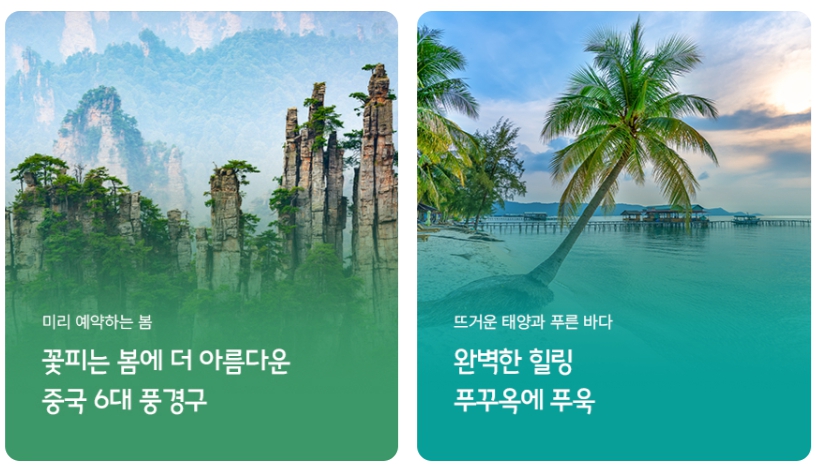 ✅ 노랑풍선 홈페이지에서 시즌별 인기 여행지를 추천해 줍니다!