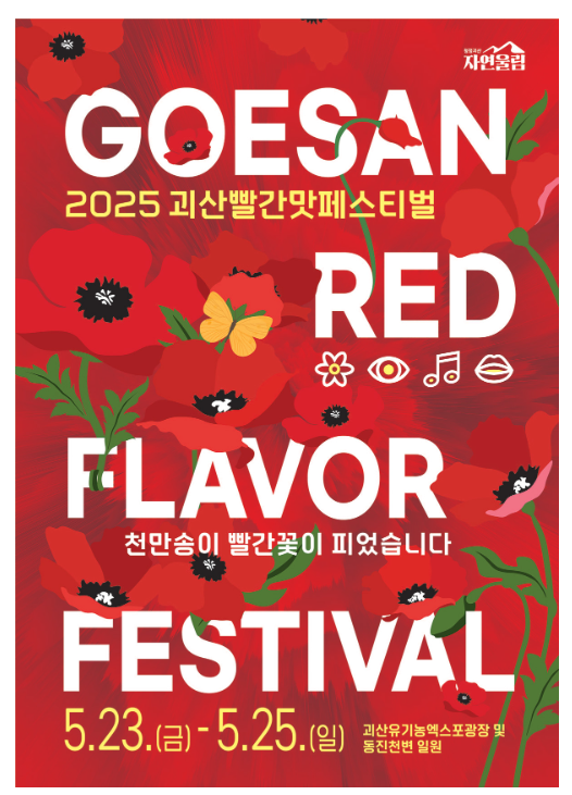 괴산에서 펼쳐질 2025 괴산 빨간맛 페스티벌은 단순한 꽃 축제를 넘어 먹거리, 볼거리, 체험거리가 가득한 오감 만족 축제입니다. 천만송이 양귀비가 붉게 물드는 동진천변, 그리고 유기농 엑스포광장에서 열리는 축제!