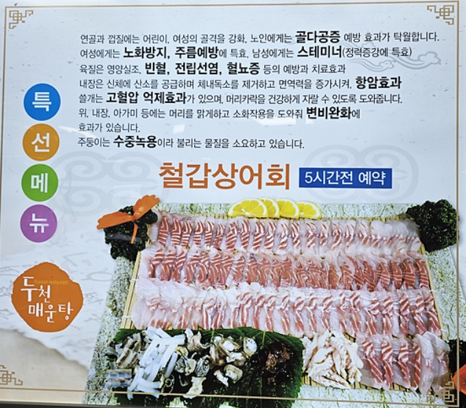 🌊 2. 대표 메뉴: 철갑상어회와 두천매운탕