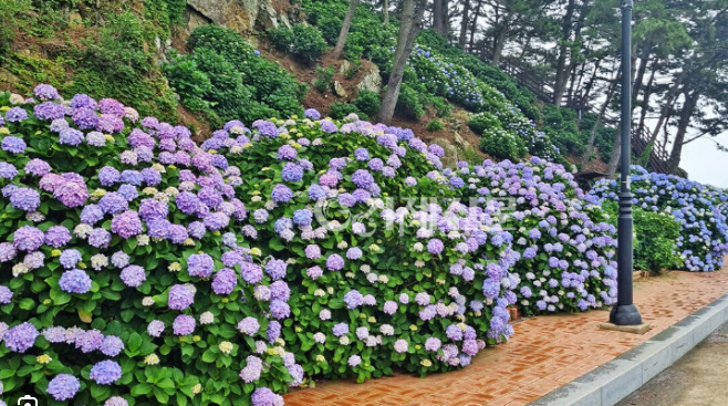 해안도로를 따라 2km 이상 펼쳐진 수국길! 바다와 절벽이 어우러진 이곳은 포토부스, 터널, 대형의자 등 다양한 볼거리가 가득한 곳입니다. 근처 명사해수욕장, 해금강, 바람의 언덕도 함께 둘러보세요.