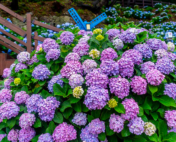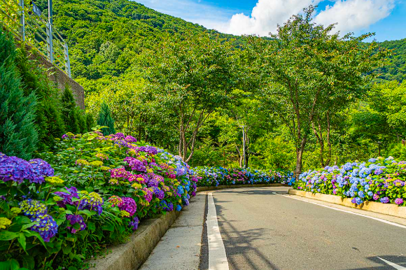 보통 6월 중순부터 7월 초가 수국의 절정기입니다. 지역마다 다소 차이는 있으니 방문 전 개화 상황을 확인하세요.