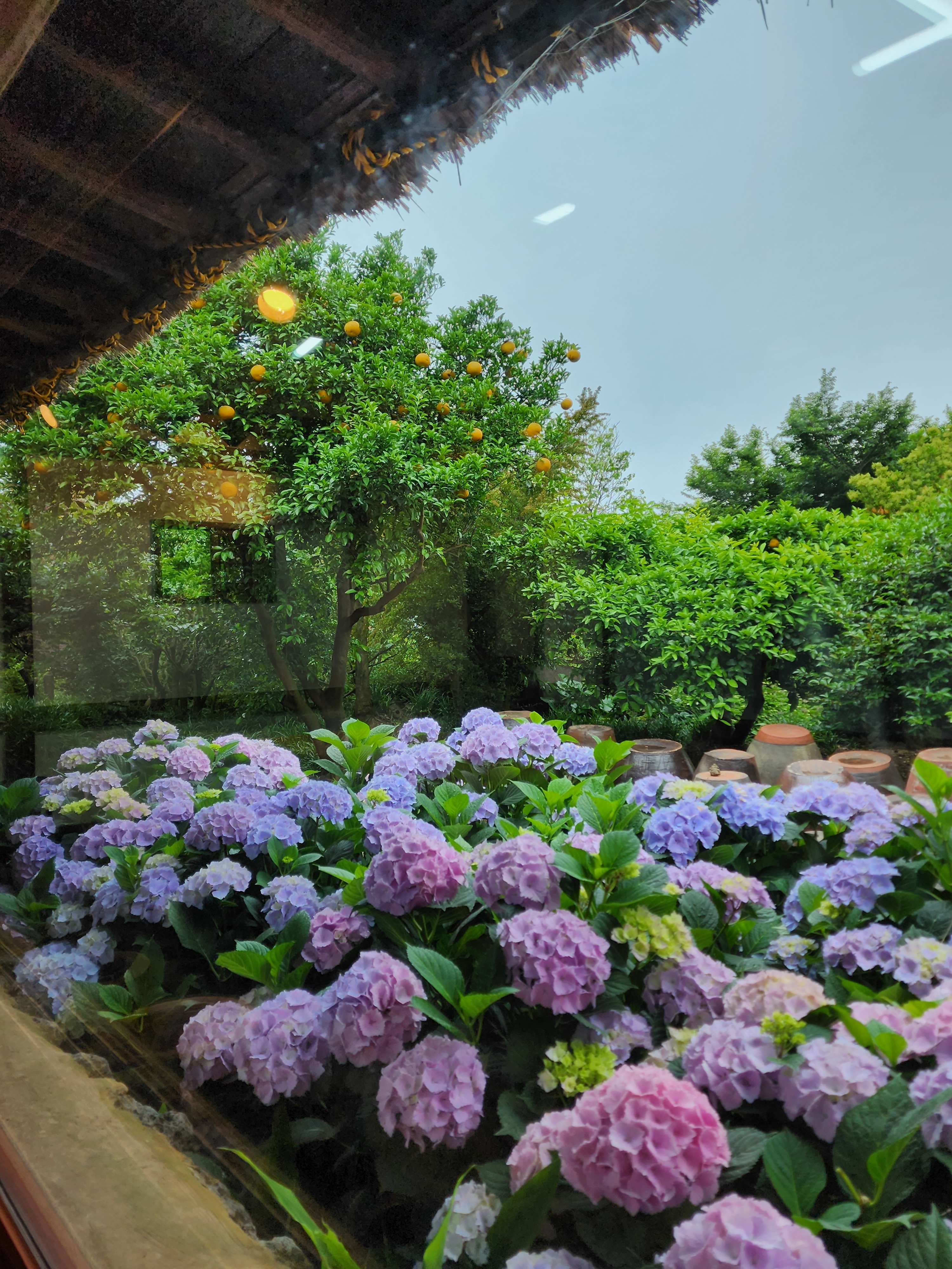 방문 시기는 5월 중순부터 6월 초가 가장 좋습니다. 평균 기온 약 22도 내외의 날씨에 산뜻한 바람, 그리고 만개한 수국이 어우러져 최고의 계절감을 선사하죠. 특히 분수대와 함께 연출된 수국 정원, 제주 전통가옥과 어우러진 꽃길은 최고의 포토 스폿입니다.