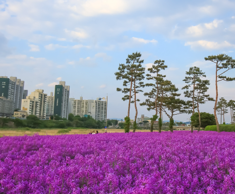 경북 영천시 완산동, 금호강을 따라 펼쳐진 생태지구공원은 그 이름만으로는 상상할 수 없는 아름다움을 간직하고 있습니다. 노란 유채꽃이 아닌 ‘보라색 유채꽃’이 흐드러지게 피는 이곳은 5월 중순부터 6월 초까지, 보랏빛 풍경으로 가득해지죠.