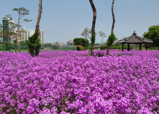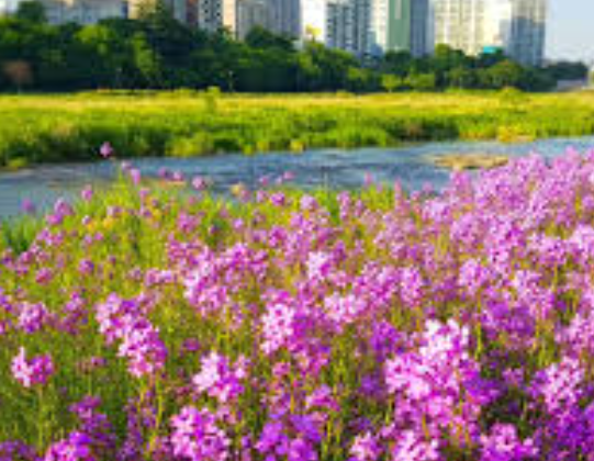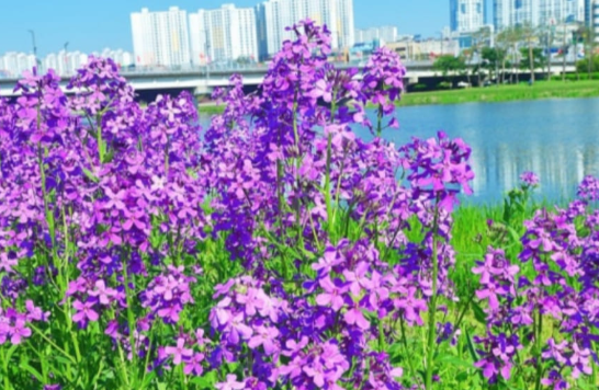 자주유채 또는 보라 유채로 알려진 이 꽃들은 햇살을 머금고 더욱 깊은 색을 자아냅니다. 특히 오후 시간대에는 금호강 물빛과 어우러져 마치 수채화 같은 분위기를 연출하며, 산책하는 사람마다 ‘여기가 정말 한국 맞아?’라는 감탄을 자아내게 합니다.