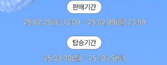 - 📌 탑승 가능 기간: 2025년 3월 30일 ~ 10월 25일