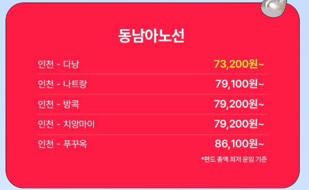 - 🔸 국제선 최저 운임은 환율 변동에 따라 일부 변동될 수 있음