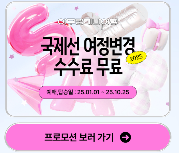 - 🔸 국제선 여정 변경 수수료 무료 혜택은 출발 14일 전까지 변경 시에만 적용