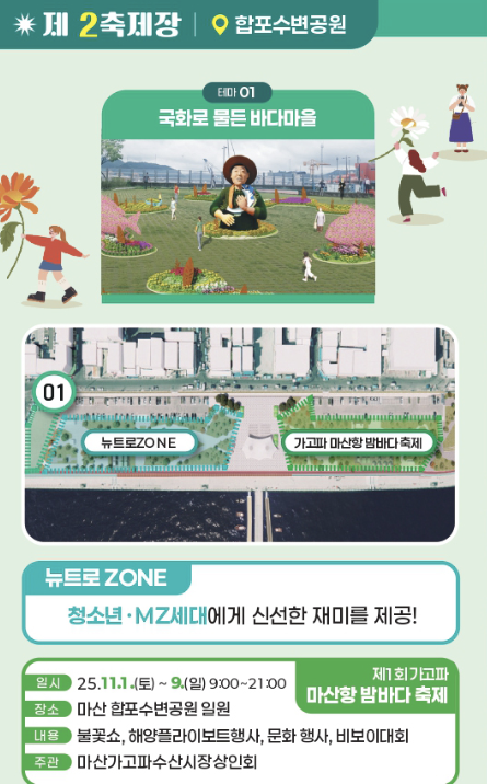 | 레트로존 | 3.15 해양누리공원 | 중장년층 / 전통 국화 애호가 | 정통 국화 전시, 고전 음악, 클래식 공연 |