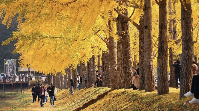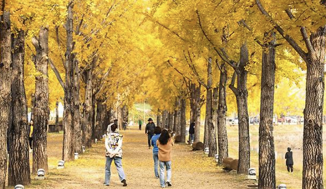 황금빛으로 물든 은행나무길과 포토존 팁